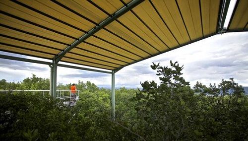 T.G. : Il s’agit d’un dispositif expérimental in natura (c’est-à-dire sur le terrain, en prenant en compte l’ensemble de l’écosystème) qui permet d’étudier la réponse d’une forêt de Chênes pubescents au changement climatique, et plus précisément, à une augmentation de la période de sécheresse estivale annoncée par les modèles climatiques pour le siècle à venir.